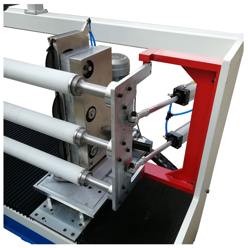 2. 電機控制系統(tǒng)為PLC可程式控制器,同軸中可設(shè)定多種尺寸,電腦于切割時自動調(diào)整切割寬度
